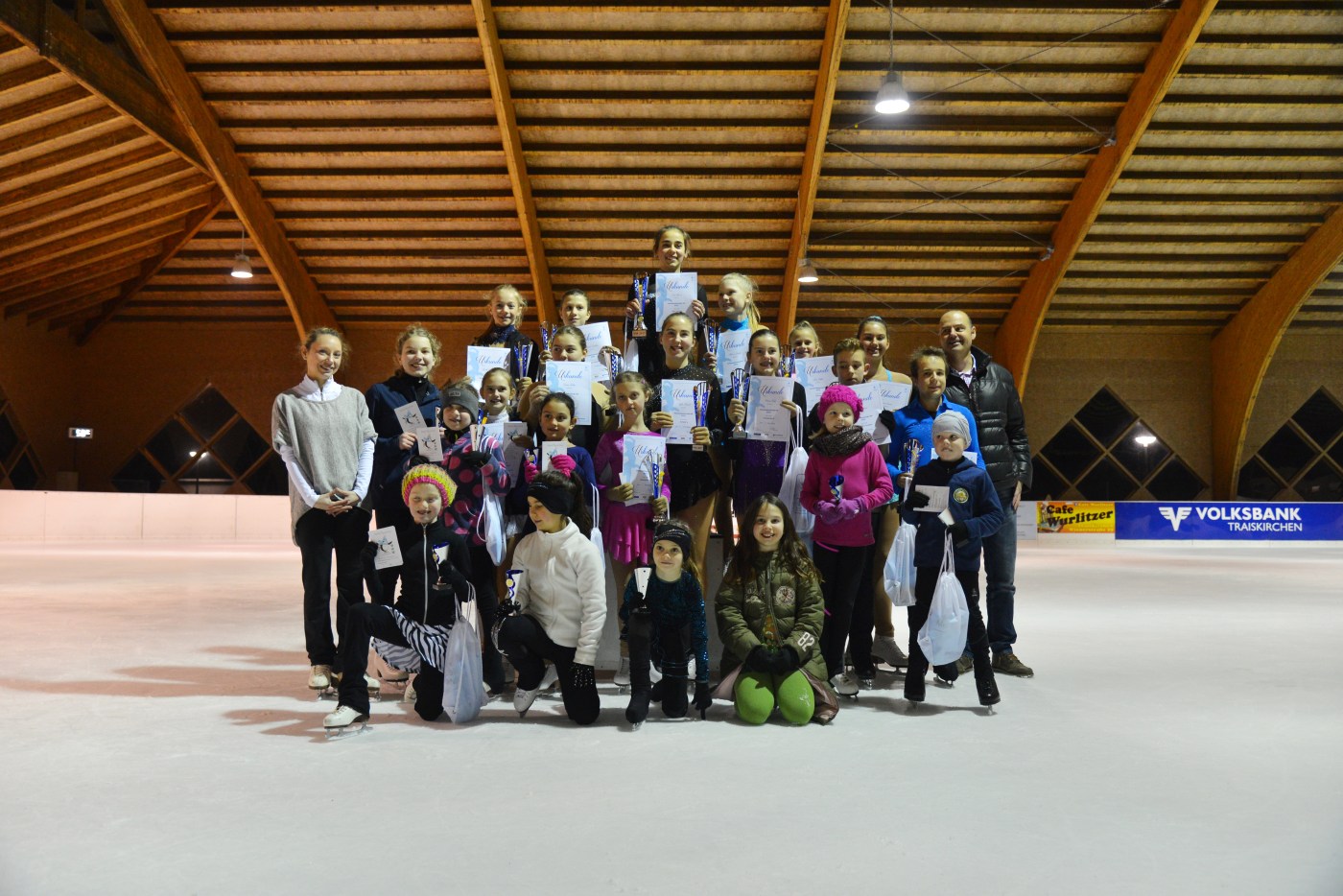 Am 7.3.2017 fand die diesjährige Vereinsmeisterschaft des TER statt. Es war die größte Vereinsmeisterschaft in der noch jungen Geschichte des Vereins. 26 Kunstläuferinnen und Minikunstläufer waren am Start. Auch das Zuschauerinteresse war mit ca. 80-100 Besuchern enorm. Zu Beginn zeigten unsere 2 Mini Kunsteislaufgruppen ihr, in dieser Saison erlerntes Können. Im Anschluss darin präsentierten die Kunsteisläuferinnen und Läufer ihre Kürprogramme. Im Rahmen der Siegerehrung wurden den jüngsten Läuferinnen und Läufern ihre Eissternchen Diplome überreicht. Die anschließende Siegerehrung „On Ice“ war einer der Höhepunkte einer erfolgreichen Saison. Der gemeinsame gemütliche Ausklang der Saison fand im Anschluss daran bei einem großen „Kuchenbuffet“ statt.
